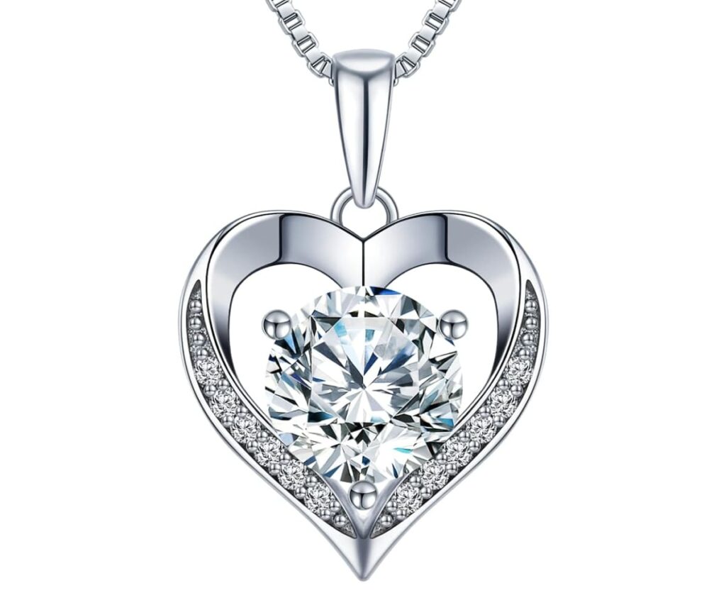 This necklace boasts a 3-carat moissanite heart pendant, offering a bold statement of love and luxury. Crafted from sterling silver and rhodium-plated for lasting shine, it’s a perfect gift for significant occasions.